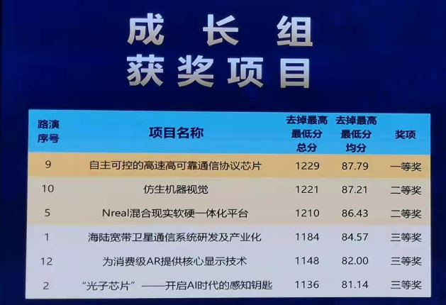 经过现场激烈的角逐,国科中国·尊时凯龙(有限公司)-官方网站的“自主可控的高速高可靠通信协议芯片项目”在总决赛中最终脱颖而出,以总分1229分的成绩斩获成长组第一名。